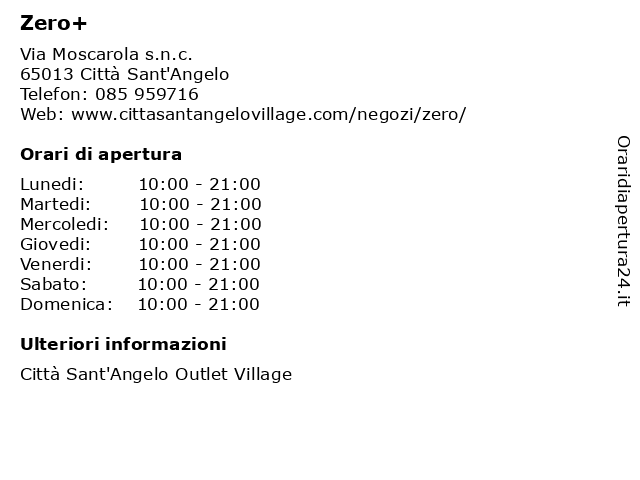 1 Zero+ (distanza: 0,46 km) Via Moscarola, s.n.c., 65013 Città Sant'Angelo PE abbigliamento, accessori, bambini, zero+ 2 Zero+ (distanza: 4,93 km) Via Moscarola snc, 65013 Città Sant'Angelo acquisti, convenienza, negozi, shopping, spesa, zero+ 3 Città Sant'Angelo Outlet Village (Orario Estivo) (distanza: 0,00 km) Via Moscarola s.n.c., 65013 Città Sant'Angelo (orario, abbigliamento, articoli vari, centro commerciale, città, estivo), negozi, outlet, sant'angelo, shopping, village 4 AllScent (Orario Estivo) (distanza: 0,00 km) Via Moscarola s.n.c., 65013 Città Sant'Angelo (orario, allscent, articoli per la persona, creme, estivo), idee regalo, profumeria, profumi 5 Almond Superfoods (Orario Estivo) (distanza: 0,00 km) Via Moscarola s.n.c., 65013 Città Sant'Angelo (orario, acquisti, alimenti, almond, convenienza, estivo), igiene persona, prodotti per la casa, shopping, spesa, superfoods, supermermercato 6 Amelie (Orario Estivo) (distanza: 0,00 km) Via Moscarola s.n.c., 65013 Città Sant'Angelo (orario, abbigliamento, accessori, amelie, estivo), fashion, moda, vestiti |