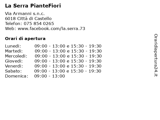 | Sabato | 09:00-13:00 e 15:30-19:30 |
