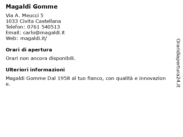 2 Speedy Gomme 2 (distanza: 0,09 km) Via Flaminia Km 58.200 s.n.c., 01033 Civita Castellana aziende, botteghe, centri, gomme, negozi, speedy 3 Magaldi S.n.c. (distanza: 4,62 km) Via Fontana Matuccia snc, 01033 Civita Castellana gommista, magaldi, s.n.c., vendita pneumatici 5 SPEEDY GOMME (distanza: 5,27 km) Strada Statale Flaminia Km 64,40 snc, 02046 Magliano Sabina (RI) convergenza, equilibratura, gomme, gommista, officina, pneumatici, speedy 6 G.f. Gomme Sas Di Menichelli Fabiano & c. (distanza: 11,42 km) Via Roma 74, 05030 Otricoli accessori, auto, fabiano, gomme, menichelli, rivend |