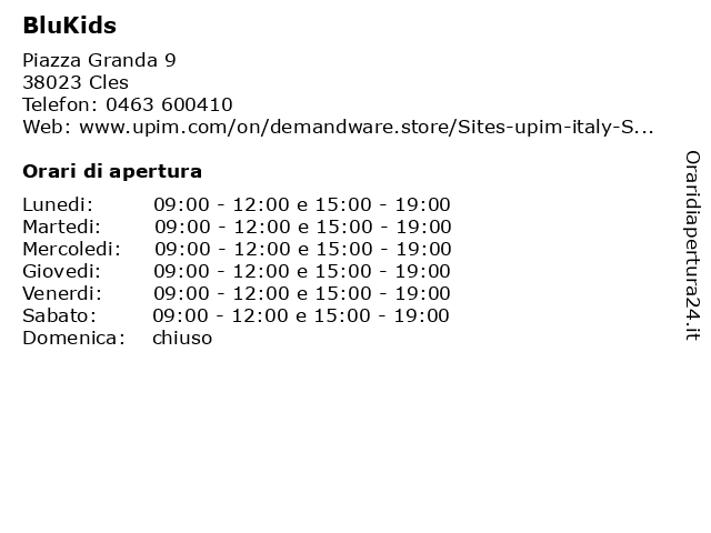 | Sabato | 09:00-12:00 e 15:00-19:00 |