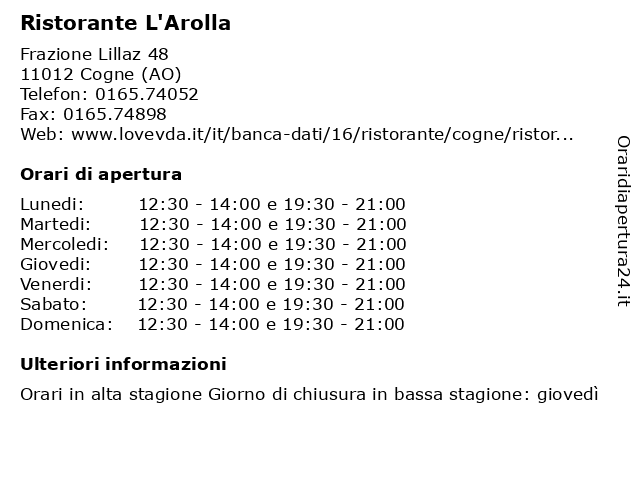 | Sabato | 12:30-14:00 e 19:30-21:00 |