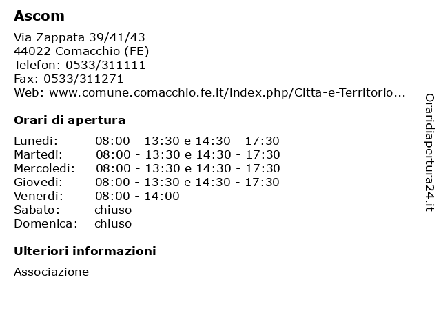 1 50&Più Sistema Associativo e di Servizi (distanza: 0,01 km) Via Antonio Zappata 43, 44022 Comacchio (FE) (sistema, 50&più, 50&più caaf, 50&più editoriale, 50&più serena, 50&più università, 730, accreditati, ascom, asl, assistenza fiscale, assistenza gratuita, assistenza pensioni, assistenza pratiche inps, assistenza sociale, associati, associativo, di, servizi, sistema 2 50&Più Sistema Associativo e di Servizi (distanza: 28,59 km) Via Don Minzoni 12/A, 44011 Argenta (FE) (sistema, 50&più, 50&più caaf, 50&più editoriale, 50&più serena, 50&più università, 730, accreditati, ascom, asl, assistenza fiscale, assistenza gratuita, assistenza pensioni, assistenza pratiche inps, assistenza sociale, associati, associativo, di, servizi, sistema 3 50&Più Sistema Associativo e di Servizi (distanza: 29,62 km) Via Garibaldi 16, 44015 Portomaggiore (FE) (sistema, 50&più, 50&più caaf, 50&più editoriale, 50&più serena, 50&più università, 730, accreditati, ascom, asl, assistenza fiscale, assistenza gratuita, assistenza pensioni, assistenza pratiche inps, assistenza sociale, associati, associativo, di, servizi, sistema 4 Ascom Servizi Srl (distanza: 34,52 km) Via Guareschi 14, 48017 Bagnacavallo ascom, associazione, commercio, servizi, srl 5 Ascom Servizi Srl (distanza: 34,86 km) Piazza della Libertà 34, 48012 Bagnacavallo ascom, associazione, commercio, servizi, srl 6 ASCOM Confcommercio - Associazione Commercianti (distanza: 47,18 km) Via Baruffaldi 14/18, 44121 Ferrara ascom, associazione, associazioni, centri, commercianti, comunità, confcommercio, di, ferrara, sport |