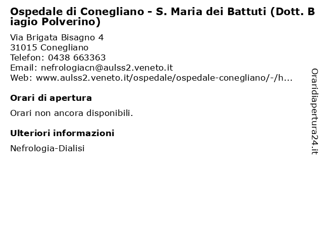 | Chiama Ospedale di Conegliano - S. Maria dei Battuti (Dott. Biagio Polverino) | |