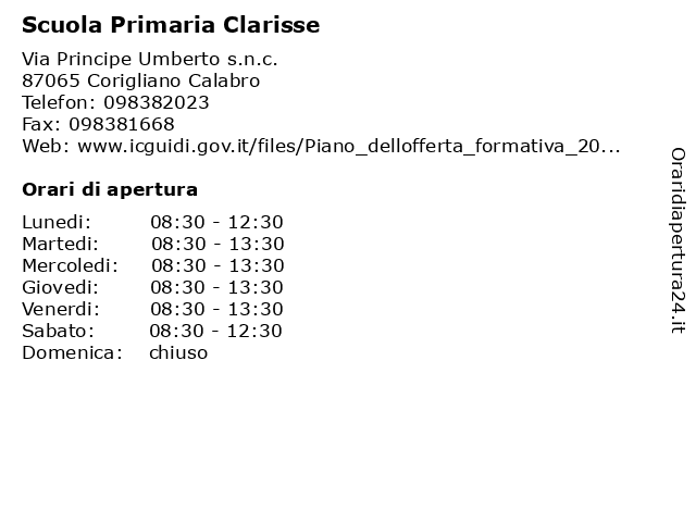 | Sabato | 08:30-12:30 |