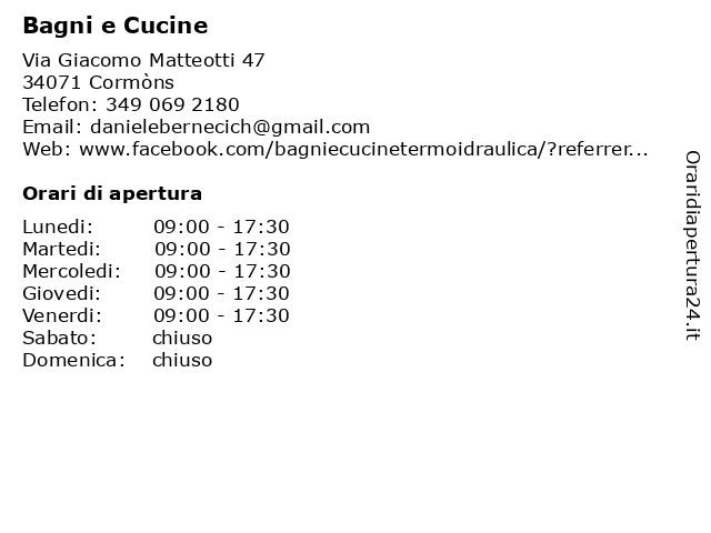 1 Nolte Cucine PL Interior Design (distanza: 11,71 km) Piazza Del Municipio 3, 34170 Gorizia costruttore di case, cucine, design, interior, nolte, pl 2 Sincerotto Arredamenti e Cucine (distanza: 13,15 km) Via Nazionale 7, 33042 Buttrio arredamenti, cucine, mobilificio, sincerotto 3 Cucine Sincerotto Srl (distanza: 15,41 km) Via Nazionale Km 8, 33040 Pradamano comm, cucine, dett, mobili, sincerotto 4 Bagni & Servizi Iniziative Ambientali (distanza: 16,39 km) Via Nazionale 59, 33040 Pradamano ambientali, bagni, iniziative, servizi 5 Arianna Beauty Center (distanza: 0,08 km) Via Giacomo Matteotti 30, 34071 Cormons abbronzatura, arianna, beauty, bellezza, center, centro, estetica 6 La Bottega del Collio (distanza: 0,20 km) Piazza Libertà 3, 34070 San Floriano del Cóllio abbigliamento, affari, bellezza, bottega, collio, del, dessert, la, moda, ristorante, vendite |