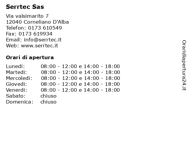 Lunedi | 08:00-12:00 e 14:00-18:00 |