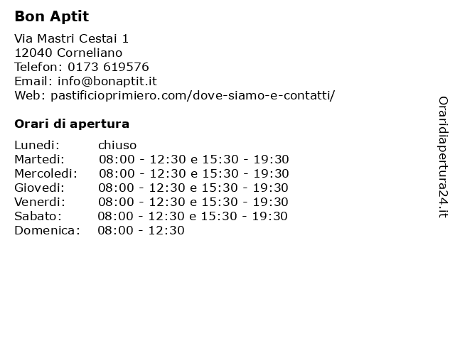 Sabato | 08:00-12:30 e 15:30-19:30 |