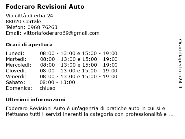 | Lunedi | 08:00-13:00 e 15:00-19:00 |