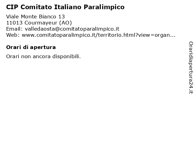 1 Croce Rossa Italiana - Comitato di Aosta (distanza: 26,58 km) Via Grand-eyvia 2, 11100 Aosta aosta, comitato, croce, di, italiana, rossa 2 Comitato Regionale USIP Valle d'Aosta (distanza: 26,71 km) Corso Lancieri Aosta 41/A, 11100 Aosta comitato, d'aosta, informazioni, regionale, servizi, usip, valle 3 Asiva Associazione Sport Invernali Valle d'Aosta (distanza: 27,03 km) Via Grand Eyvia 59, 11100 Aosta asiva, associazione, comitato, d'aosta, ditta specializzata nella realizzazione di impianti sportivi, insegnamento dello sport, invernali, regionale, sport, valle 4 CSEN Centro Sportivo Educativo Nazionale (distanza: 27,07 km) Corso Battaglione Aosta 89, 11100 Aosta (comitato, atleti, centro, csen, educativo, ente, nazionale, regionale), sport, sportivo 5 Comitato Regionale Per La Gestione Venatoria (distanza: 27,10 km) Corso Lancieri Di Aosta, 11100 Aosta comitato, gestione, legislativi, organi, regionale, venatoria 6 CSEN Centro Sportivo Educativo Nazionale (distanza: 27,30 km) Località Borgnalle 3/B, 11100 Aosta (comitato, aosta), atleti, centro, comitato, csen, educativo, nazionale, provinciale, sport, sportivo |
