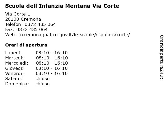 | Lunedi | 08:10-16:10 |