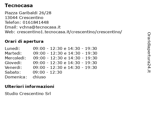 Lunedi | 09:00-12:30 e 14:30-19:30 |