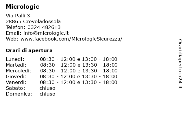 | Lunedi | 08:30-12:00 e 13:00-18:00 |