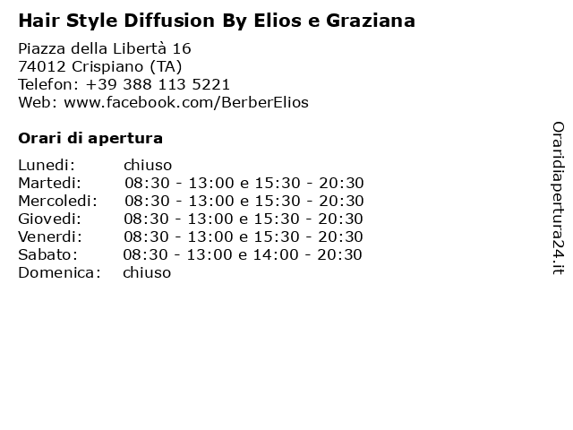 | Sabato | 08:30-13:00 e 14:00-20:30 |