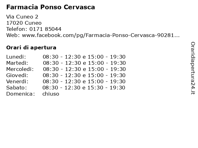 | Lunedi | 08:30-12:30 e 15:00-19:30 |