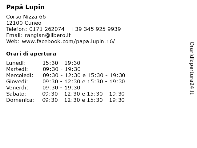 | Domenica | 09:30-12:30 e 15:30-19:30 |