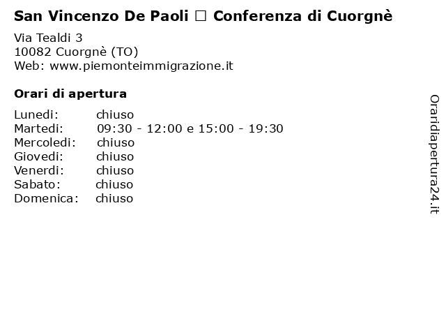 | Martedi | 09:30-12:00 e 15:00-19:30 |