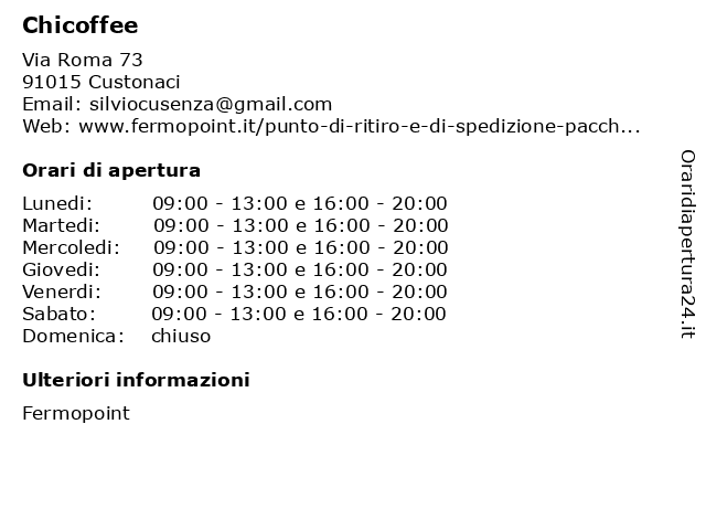 Tag di ricerca per Chicoffee:spedizioni, pacco, ritiri, fermopoint, chicoffee |