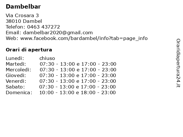 | Martedi | 07:30-13:00 e 17:00-23:00 |