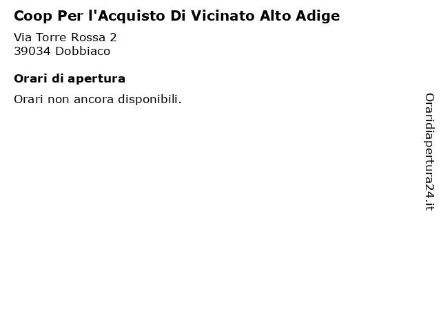 1 Assistenza Tumori Alto Adige - Südtiroler Krebshilfe (distanza: 0,06 km) Via Gustav Mahler 3, 39034 Dobbiaco adige, alto, assistenza, krebshilfe, südtiroler, tumori 2 Volksbank (Banca Popolare dell'Alto Adige) (distanza: 9,31 km) Via Parrocchia 13, 39035 Monguelfo (banca, adige), banca, cassa, dell'alto, popolare, prestiti, sportello, volksbank 3 Coop Konsumnaves Fil. Niederolang (distanza: 16,15 km) Via Dei Campi 1, 39030 Valdaora acquisto, adige, alimentari, alto, comm, coop, dett, fil, konsumnaves, niederolang, prod, vari, vicinato 4 Mila Milkon Alto Adige Soc. Agr. Coop. (distanza: 22,71 km) Località Senni snc, 39031 Brunico acquisti, adige, agr., alto, convenienza, coop., mercato, mila, milkon, shopping, soc., spesa, vendita diretta 5 Associazione Diabetici Alto Adige - Südtiroler Diabetiker Bund (distanza: 22,86 km) Via Ospedale 7, 39031 Brunico adige, alto, associazione, bund, cure, diabete, diabetici, diabetiker, sanità, südtiroler 6 Banca Popolare Dell'Alto Adige Societa' Cooperativa Per Azioni (distanza: 42,78 km) Via Von Enzenberg 1, 39037 Rio Di Pusteria adige, alto, azioni, banca, banche, cassa, cooperativa, credito, ordinario, popolare, risparmio, societa |