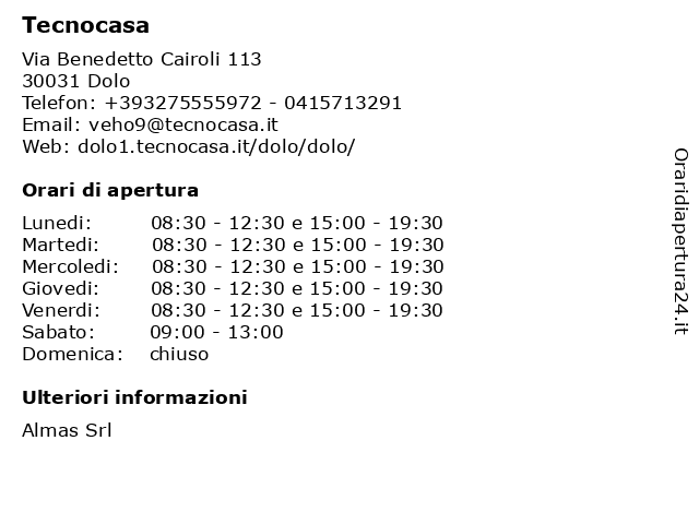 | Lunedi | 08:30-12:30 e 15:00-19:30 |