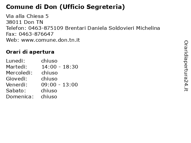 Tag di ricerca per Comune di Don (Ufficio Segreteria):di, (ufficio, don, comune, segreteria), don comune, uffici comunali don |
