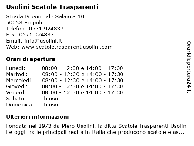 | Venerdi | 08:00-12:30 e 14:00-17:30 |