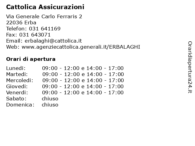| Venerdi | 09:00-12:00 e 14:00-17:00 |