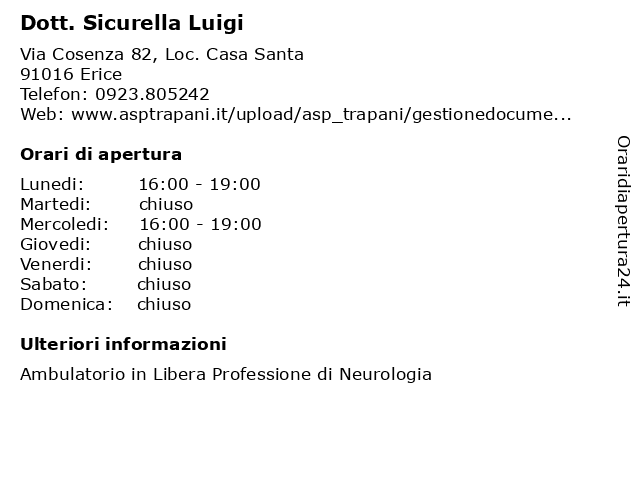 | Lunedi | 16:00-19:00 |