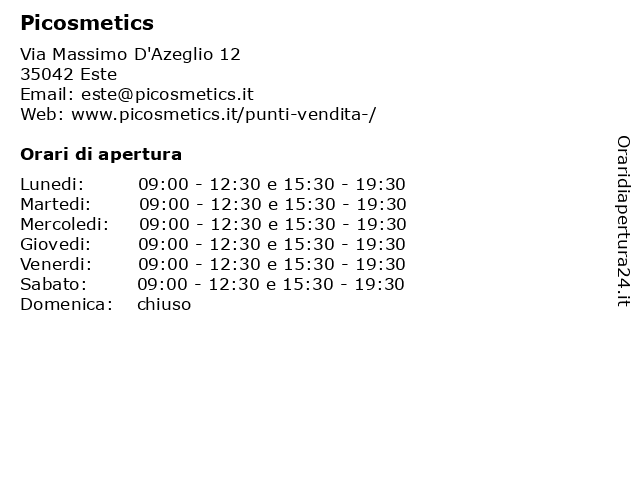 | Lunedi | 09:00-12:30 e 15:30-19:30 |