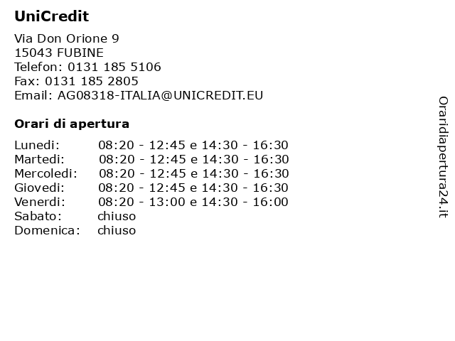 1 Unicredit (distanza: 5,95 km) Via Roma 58, 14030 Viarigi assicurazione per la casa, assicurazione per la persona, banca, carta prepagata, conto, creditexpress dynamic, finanziamenti, genius first, genius smart, investimenti, mutui, prestiti personali, super genius 2.0, unicredit, unicreditcard click, unicreditcard flexia classic 2 UniCredit (distanza: 6,00 km) Piazza Mezzadra 16, 15049 Vignale Monferrato assicurazione per la casa, assicurazione per la persona, banca, bancomat, carta prepagata, conto, creditexpress dynamic, finanziamenti, genius first, genius smart, investimenti, mutui, prestiti personali, super genius 2.0, unicredit, unicreditcard click, unicreditcard flexia classic 3 Unicredit (distanza: 10,10 km) Via Mazzini 56, 14032 Casorzo assicurazione per la casa, assicurazione per la persona, banca, bancomat, carta prepagata, conto, creditexpress dynamic, finanziamenti, genius first, genius smart, investimenti, mutui, prestiti personali, super genius 2.0, unicredit, unicreditcard click, unicreditcard flexia classic 5 Unicredit (distanza: 15,25 km) Piazza Turati 9, 15100 Alessandria assicurazione per la casa, assicurazione per la persona, banca, bancomat, carta prepagata, conto, creditexpress dynamic, finanziamenti, genius first, genius smart, investimenti, mutui, prestiti personali, super genius 2.0, unicredit, unicreditcard click, unicreditcard flexia classic 6 Unicredit (distanza: 15,44 km) Via Alessandro III 3, 15121 Alessandria (AL) banca, banking, private, unicredit |