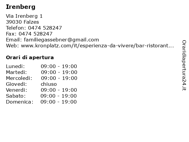 1 Irenberg (Ristorante ) (distanza: 0,00 km) Via Irenberg 1, 39030 Falzes (ristorante, bar, bere, irenberg, mangiare, pizzeria, ristorante, specialità, stuzzicheria 2 Senfter's Cafè Bistro (distanza: 33,19 km) Piazzetta Senfter snc, 39038 San Candido bar, bistro, caffetteria, cafè, dolci artigianali, ristorante, senfter's, specialità gastronomiche 3 Senfter Macelleria (Orario Invernale) (distanza: 33,32 km) Via Mercato Vecchio 4, 39038 San Candido (orario, carne, invernale), macelleria, piatti caldi, salumi, senfter, specialità 4 Ristorante Viel dal Pan (distanza: 41,50 km) Via Piagn 1, 38032 Livinallongo Del Col Di Lana bar, bere, dal, mangiare, pan, ristorante, specialità, stuzzicheria, viel 5 La Mela Verde Moena (distanza: 49,81 km) Strada Riccardo Loewy 20/A, 38035 Moena alimentari, la, mela, moena, specialità alimentari, verde 6 Strauss - Spezialitäten/Specialità (distanza: 51,27 km) Via Unterrainerstraße 62, 39057 Appiano - Bolzano gastronomia, ristorazione, spezialitäten/specialità, strauss |