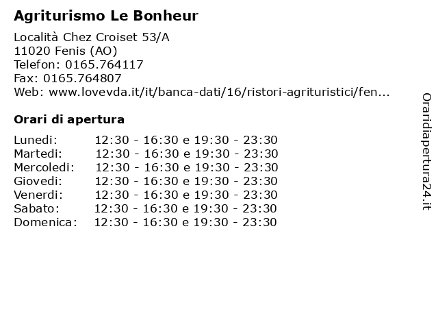 | Domenica | 12:30-16:30 e 19:30-23:30 |