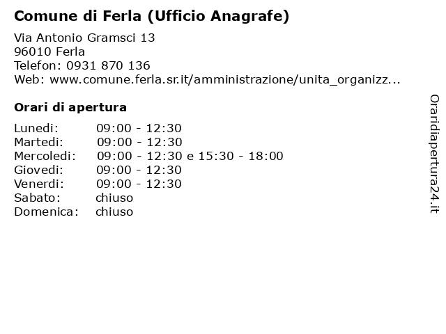 1 Comune di Buscemi (Ufficio Anagrafe, Stato Civile e Carta D'Identità) (distanza: 6,24 km) Via Libertà 12, 96010 Buscemi (ufficio, anagrafe, buscemi, carta, civile, comunale, comune, d'identità), servizio, stato, ufficio 2 Comune di Palazzolo Acreide (Ufficio Anagrafe e Statistica) (distanza: 7,16 km) Piazza del Popolo 1, 96010 Palazzolo Acreide (SR) (uffici, (ufficio, acreide, anagrafe, comunale, comune, elettorale, palazzolo, servizio, statistica, statistica) 3 Anagrafe degli Equidi - Associazione Provinciale Allevatori (distanza: 7,72 km) Via Primosole 33, 96010 Palazzolo Acreide - SR allevatori, anagrafe, associazione, associazioni, degli, equidi, fondazioni istituti, provinciale 4 Comune di Sortino (Ufficio Anagrafe e Stato Civile) (distanza: 9,82 km) Viale Mario Giardino Snc, 96010 Sortino (SR) (ufficio, anagrafe, civile), comune, servizio, sortino, stato, ufficio 5 Comune di Francofonte (Ufficio Anagrafe) (distanza: 13,25 km) Via dei Combattenti 2, 96015 Francofonte (SR) (ufficio, anagrafe), comunale, comune, di, francofonte, servizio 6 Comune di Solarino (Ufficio Anagrafe) (distanza: 15,98 km) Piazza del Plebiscito 34, 96010 Solarino (ufficio, anagrafe), attività, comunale, comune, fontpolizialocale.roccagloriosa@asmepec.ite, nazionale, nuova, pellezzano, produttive), protocollo), roccaromana, servizi, servizio, sociali), solarino, ufficio |