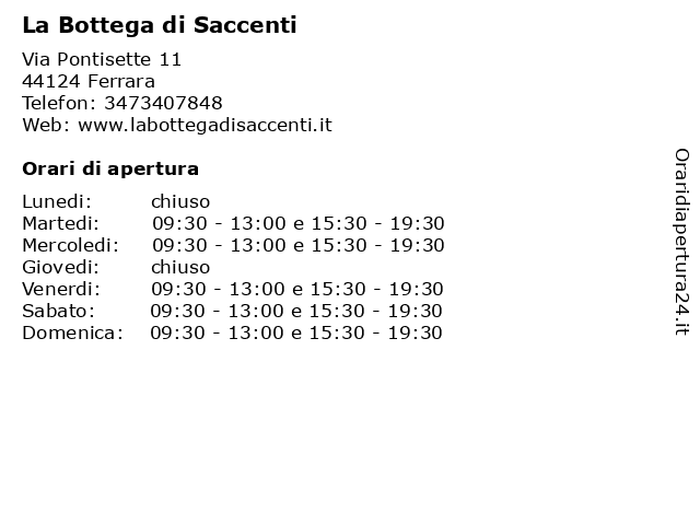 Sabato | 09:30-13:00 e 15:30-19:30 |