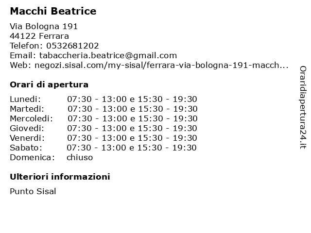 | Sabato | 07:30-13:00 e 15:30-19:30 |