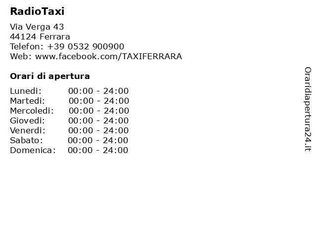 | Sabato | 00:00-24:00 |