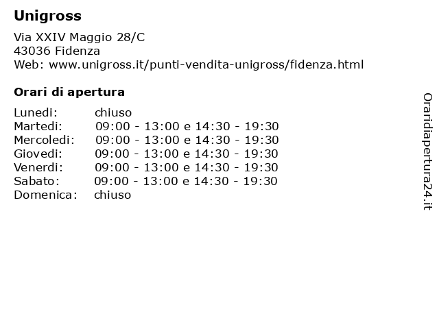 Giovedi | 09:00-13:00 e 14:30-19:30 |