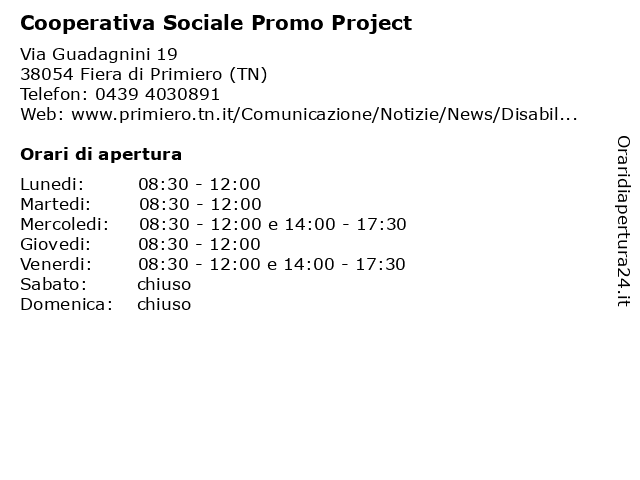 | Venerdi | 08:30-12:00 e 14:00-17:30 |