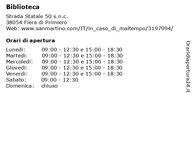 Martedi | 09:00-12:30 e 15:00-18:30 |