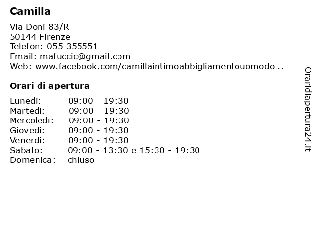 | Sabato | 09:00-13:30 e 15:30-19:30 |