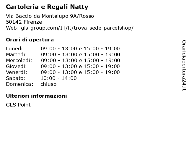 | Lunedi | 09:00-13:00 e 15:00-19:00 |