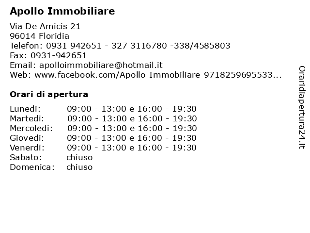 | Venerdi | 09:00-13:00 e 16:00-19:30 |