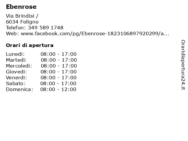 | Sabato | 08:00-17:00 |
