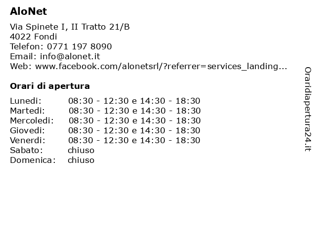 Lunedi | 08:30-12:30 e 14:30-18:30 |