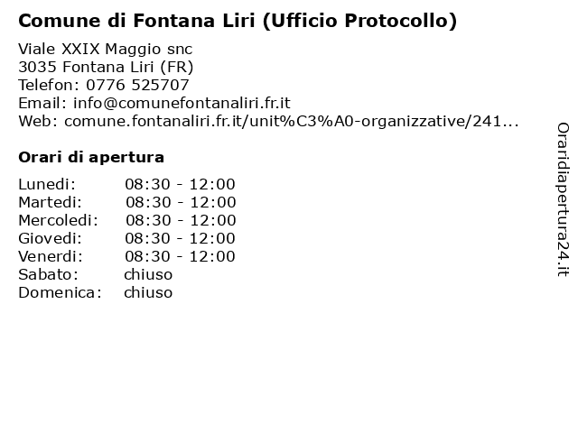 1 Comune di Fontana Liri (Ufficio Protocollo) (distanza: 0,05 km) Viale XXIX Maggio snc, 03035 Fontana Liri (FR) (ufficio, comune, di, fontana, fontana liri comune, liri, protocollo), uffici comunali fontana liri 2 Comune di Castelliri (Ufficio Protocollo) (distanza: 7,75 km) Via Torino 19, 03030 Castelliri Fr (ufficio, castelliri, comune, di, protocollo), servizi, utente 3 Comune di Vicalvi (Protocollo) (distanza: 14,75 km) Piazza Giovanni Paolo II° sn, 03030 Vicalvi FR (protocollo), comune, di, servizi, utente, vicalvi 4 Comune di Campoli Appennino (Protocollo) (distanza: 17,71 km) Piazza Umberto I Snc, 03030 Campoli Appennino (protocollo), appennino, campoli, comune, di, servizi, utente 5 Comune di Pescosolido (Ufficio Protocollo) (distanza: 17,74 km) Via Umberto I s.n.c, 03030 Pescosolido (servizio, (ufficio, brenzone, comune, di, eomunale, garda, nazionale, pescosolido, protocollo), risorse, servizio, sul, ufficio, umane) 6 Conservatorio Licinio Refice (Ufficio affari generali e protocollo) (distanza: 17,77 km) Viale Michelangelo snc, 03100 Frosinone (ufficio, affari, arte, conservatori, conservatorio, generali, istituto musicale, licinio, musica, protocollo), refice, studi superiori, uffici, università |