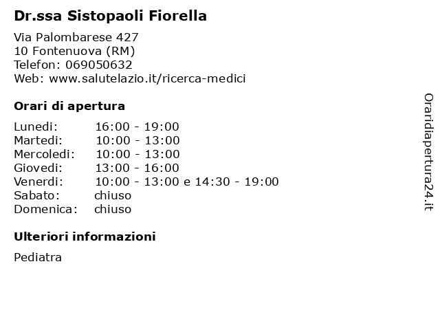 | Venerdi | 10:00-13:00 e 14:30-19:00 |