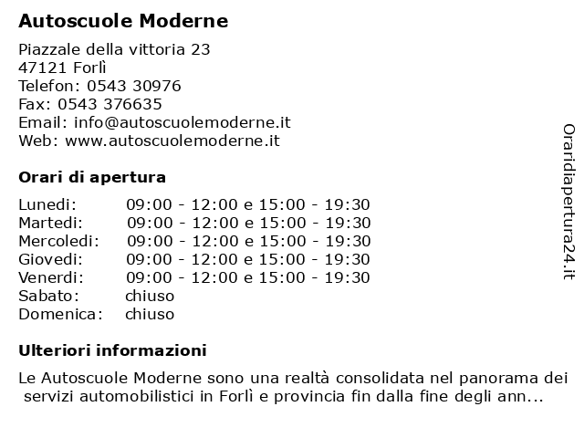 Lunedi | 09:00-12:00 e 15:00-19:30 |