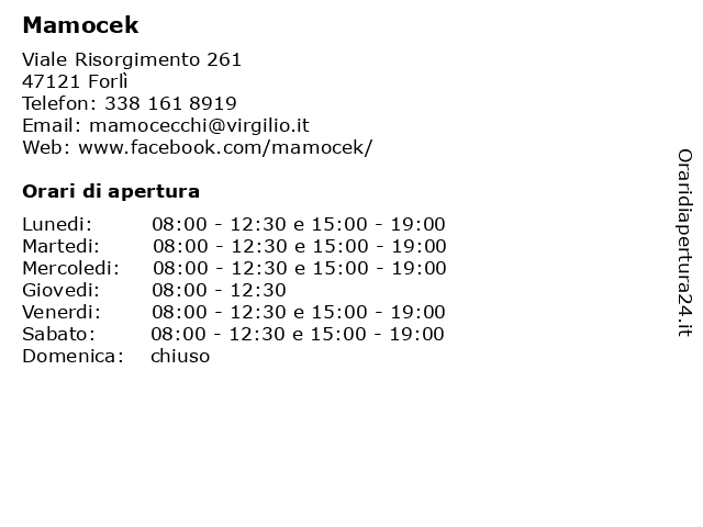 Martedi | 08:00-12:30 e 15:00-19:00 |