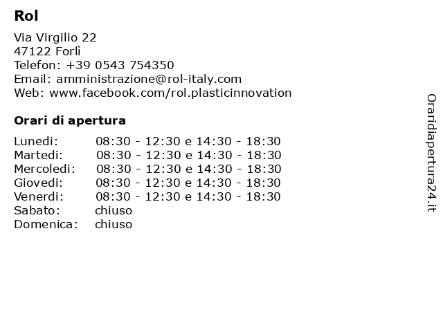 | Lunedi | 08:30-12:30 e 14:30-18:30 |