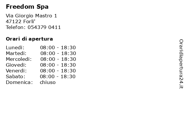 | Venerdi | 08:00-18:30 |